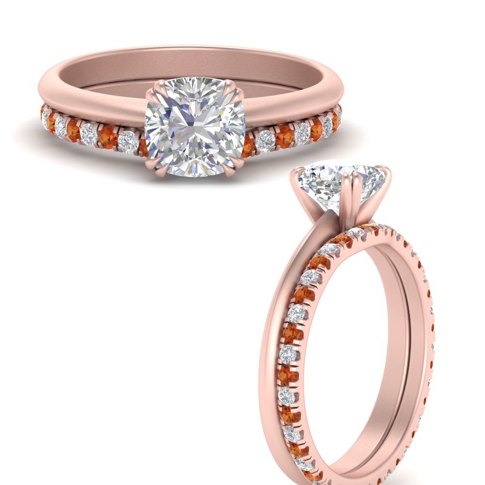 Knife Edge Solitaire Ring With Eternity Orange Sapphire Wedding Band In 14k Rose Gold Fascinating Diamonds